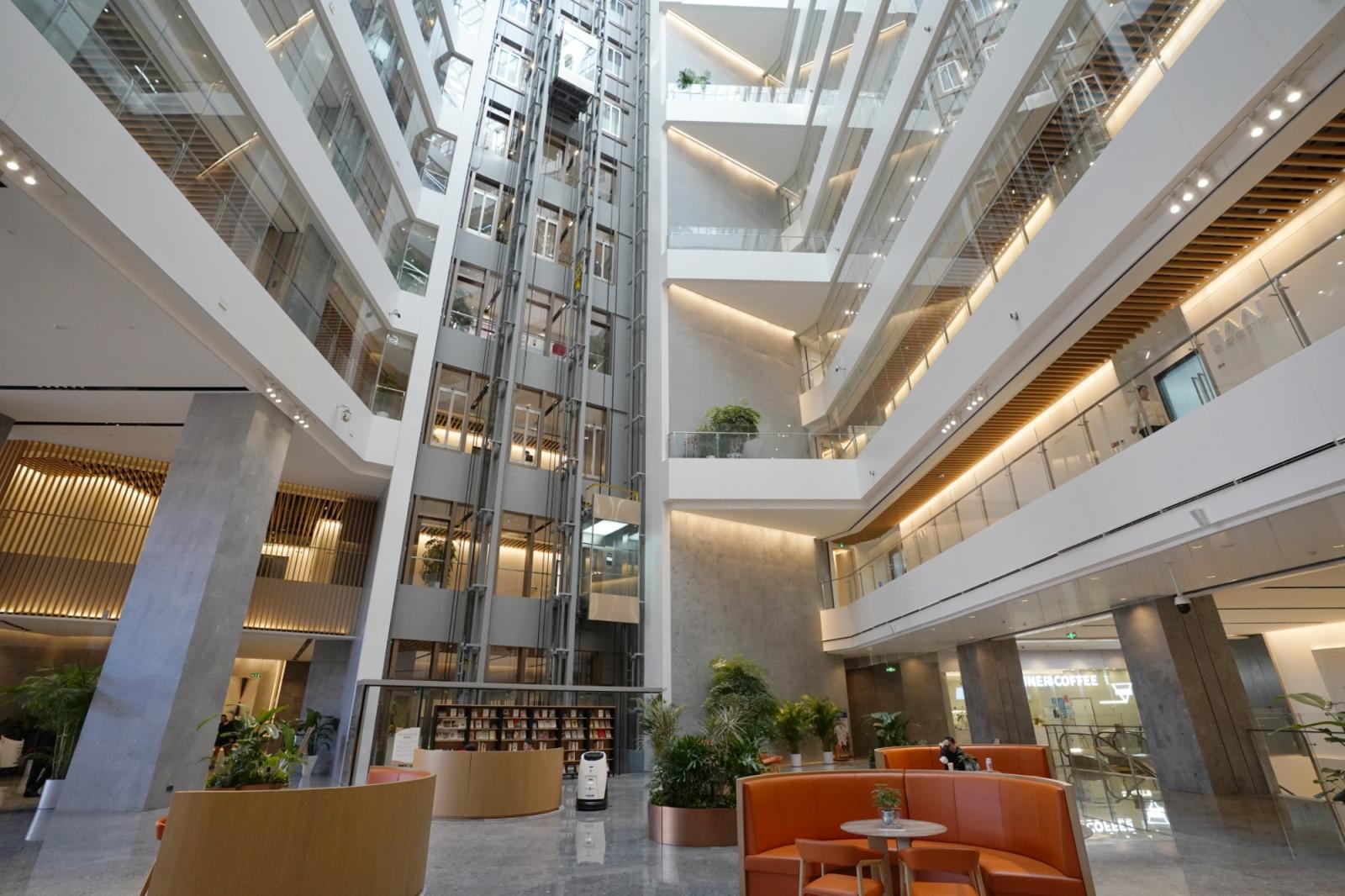 楼宇内有多种共享空间,比如开放式大堂、空中花园、AGI创新空间、地铁连廊等,在B1层规划了商超、理发、餐饮等商业业态,实现了楼上“工作”楼下“生活”的场景转化,还将在楼宇里开展丰富活动,营造轻松舒适、人文智能的工作社区氛围。